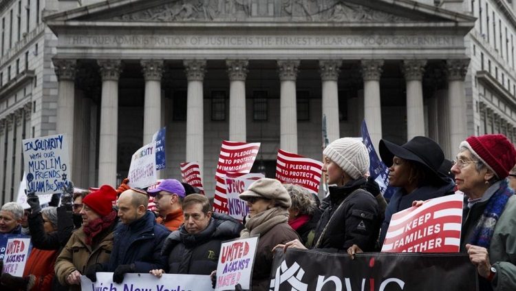 وعلى صعيد متصل، احتشد كثير من المعارضين لترامب أمام البيت الأبيض وفي شيكاغو وعشرات المدن الأميركية؛ احتجاجا على إعلان حالة الطوارئ الوطنية في البلاد.