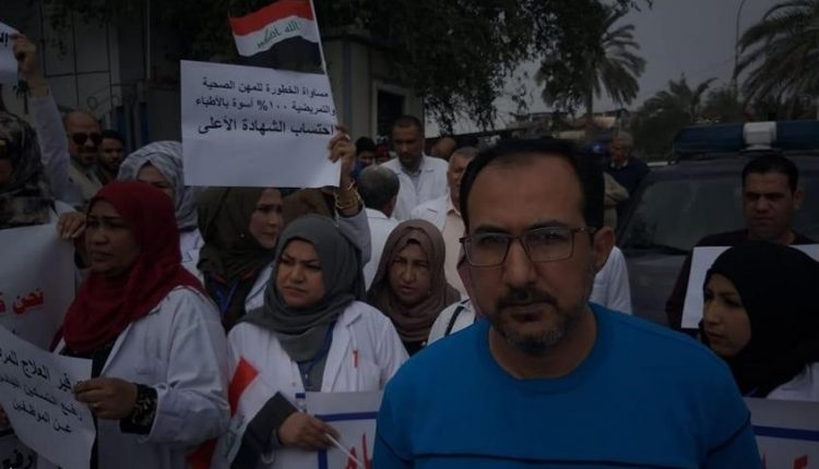 خام – البصرة: تظاهر العشرات من ذوي المهن الصحية، اليوم الأحد ، أمام مبنى دائرة الصحة في البصرة، موجهين عدة مطالب للحكومة الاتحادية.