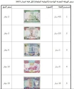 وسيتم بيع الأوراق النقدية الملغاة لعام 1973 للهواة وباسعار تترواح بين 2 دولار الى 15 دولار وحسب الفئة النقدية لكل واحدة.انتهى (1)