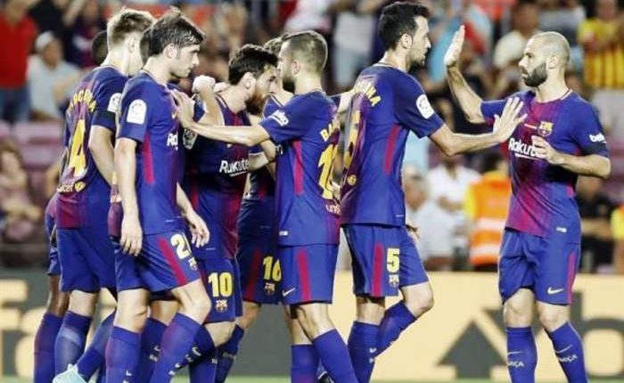 سجل ميسي هدف التقدم لبرشلونة من ركلة ثابتة في الدقيقة 18 قبل ان يعزز النتيجة قبل نهاية الشوط الأول من تمريرة رائعة من سواريز.