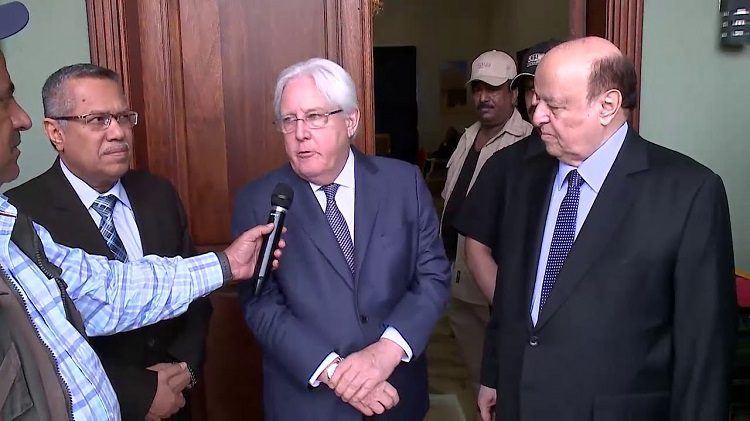 وخلال لقائه المبعوث الدولي الى اليمن، مارتن غريفيث، طالب هادي “تحديد الطرف المعرقل لاتفاق ستوكهولم، لأن خيار الفشل سيؤدي إلى قتل آمال اليمنيين في تحقيق السلام المستدام وإنهاء الانقلاب وتداعياته.”