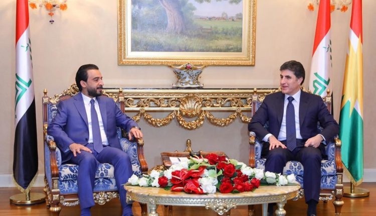 خام – اربيل: بحث رئيس مجلس النواب محمد الحلبوسي يرافقه وفد نيابي، اليوم الثلاثاء، مع رئيس حكومة إقليم كردستان، نيجرفان بارزاني، ملف اختيار محافظ لنينوى.