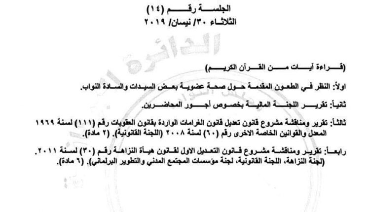 مشاركة بالوثيقة..4 فقرات على جدول اعمال جلسة اليوم بينها قانون النزاهة مجلس النوابمختارات 0 مشاركة FacebookTwitterGoogle+ReddItWhatsAppPinterestالبريد الإلكترونيTelegramطباعة