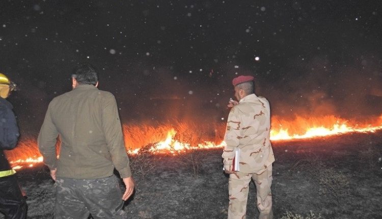 وتابع أن “الحريق حدث بسبب أطلاق طائرة سمتية تابعة الى قوات التحالف مشاعل حرارية على الأعشاب”.