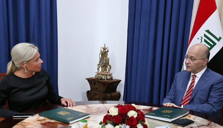 استقبل رئيس الجمهورية برهم صالح، اليوم الأحد، في قصر السلام ببغداد، الممثلة الخاصة للأمين العام للأمم المتحدة في العراق جينين هينيس بلاسخارت.