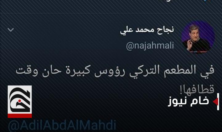يذكر أن نجاح محمد علي غرّد على موقع تويتر في وقت سابق قال فيها (في المطعم التركي رؤوس كبيرة حان وقت قطافها)، في إشارة الى خطبة تاريخية للحجاج بن يوسف الثقفي، تقول الروايات إنه ألقاها في أهل الكوفة عندما بعث إليها.انتهى (1)