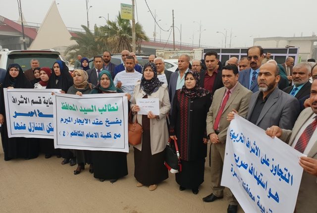 وقال مراسل ” خام ” في البصرة ، إن “عشرات المشرفين التربويين احتشدوا قرب قسم الاشراف التربوي في الموقع السابق لمعهد المعلمين في منطقة العشار احتجاجاً على مزاحمتهم في مقر عملهم من قبل كلية الامام الكاظم ، والتي تعاقدت مع الحكومة المحلية على تأجير الموقع”، مبيناً أن “المشاركين في الوقفة طالبوا الحكومة المحلية بإلغاء قرارها لأنه انعكس سلباً على اداء المشرفين التربويين الذين يعانون من ضيق المكان المخصص لعملهم”.