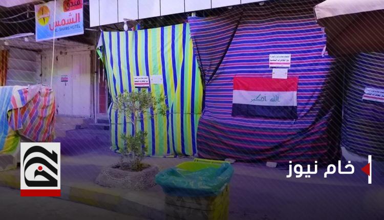 كما اقفل اصحاب المحال التجارية في المدينة محالهم، وعلقوا لافتات خطوا عليها شعارات تعبر عن تضامنهم مع التظاهرات الاحتجاجية الجارية في عموم العراق.
