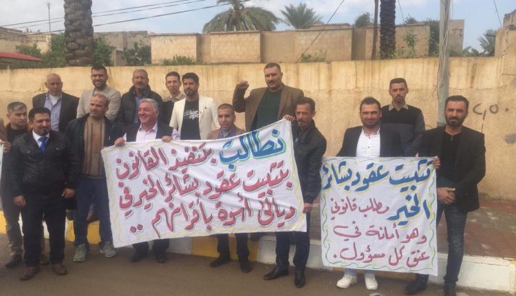 خام – ديالى : نظم العشرات من اصحاب عقود بشائر الخير في محافظة ديالى وقفة احتجاجية في قضاء بعقوبة للمطالبة بتفعيل قرار تثبيتهم الذي صدر منذ العام 2012 لكنه لم يفعل .