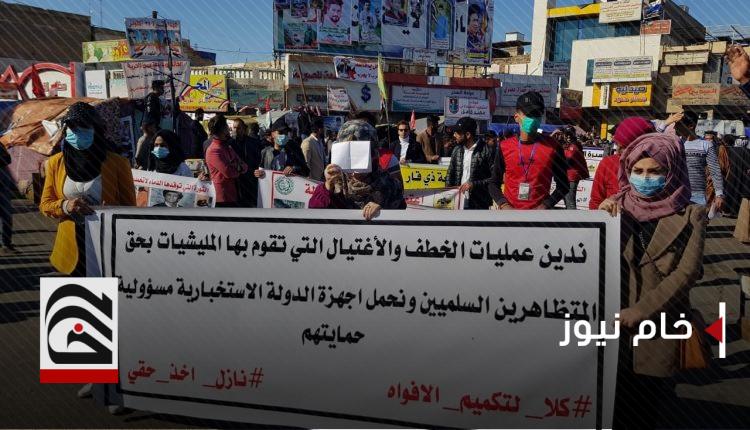 طلاب الجامعات في ذي قار يعتصمون احتجاجا على عمليات الاغتيال والخطف