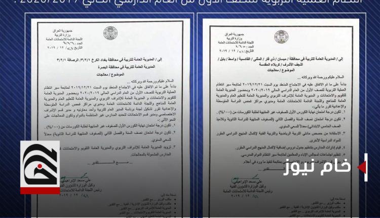 أعلنت “وزارة التربية العراقية اليوم السبت،كانون الأول اللجنة الدائمة للامتحانات العامة عن متابعة سير انتظام العملية التربوية للنصف الاول من العام الدارسي الحالي 2019/2020ونظراً للظروف الخاصة التي تمر بها بعض المحافظات العراقية”.