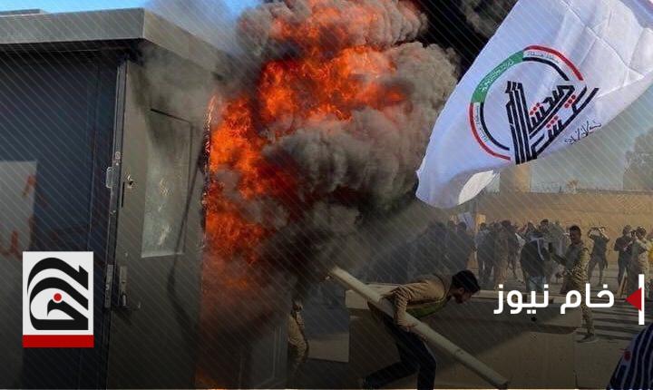 خام – بغداد: اقدم مناصرون لـ “حزب الله العراق”،  على حرق بوابة السفارة الأمريكية في بغداد.
