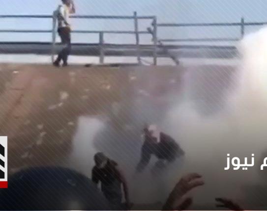 خام – بغداد: لحظة استشهاد احد المتظاهرين بقنبلة مسيلة للدموع على سريع محمد القاسم شرقي العاصمة بغداد.