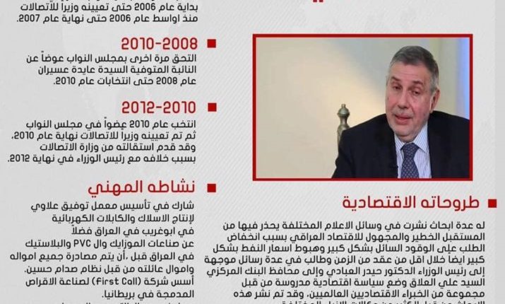 انفوكرافيك.. السيرة الذاتية لرئيس مجلس الوزراء المكلف محمد توفيق علاوي