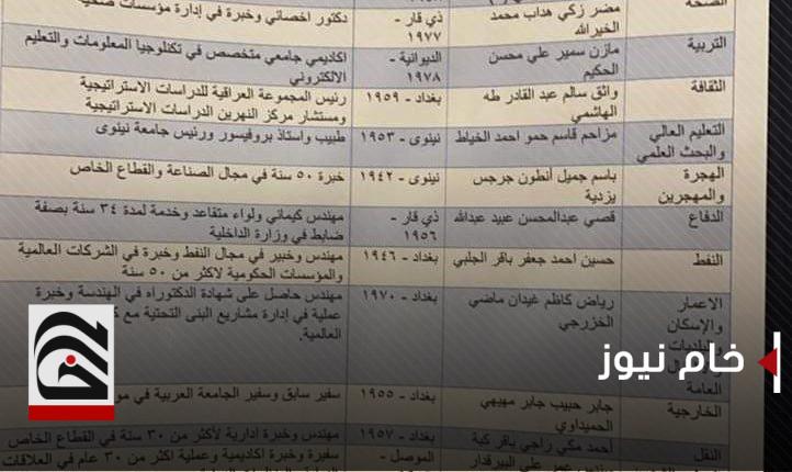 تداول ناشطون ووسائل اعلام محلية ، اليوم الخميس ، قائمة قيل انها تضم اسماء الوزراء المرشحين لحكومة رئيس الوزراء المكلف محمد توفيق علاوي .