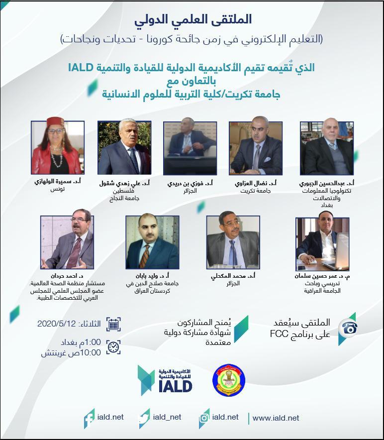 4-مداخلة الأستاذ الدكتور نضال مزاحم رشيد العزاوي من العراق، جامعة تكريت /كلية التربية ، وعنوانها: التعليم الالكتروني في زمن كورونا بين جدلية الإطار وفاعلية المضمون.