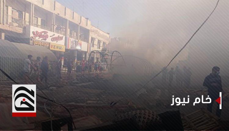 حريق يلتهم مبنى تجاريا و 15 خيمة اعتصام في ساحة الحبوبي وسط الناصرية ( مصور )