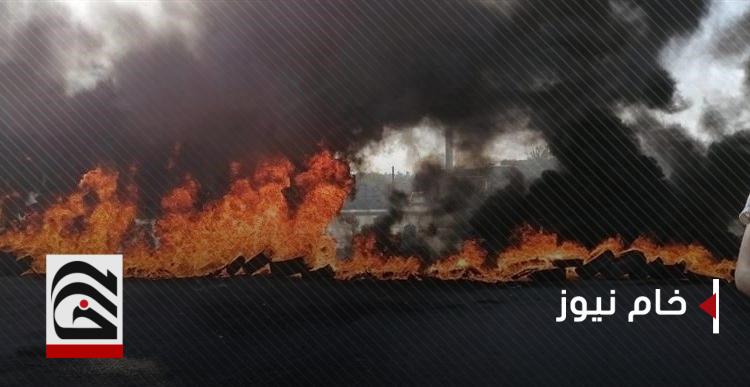 اقدم متظاهرون غاضبون على حرق الإطارات أمام دائرة كهرباء الديوانية ، اليوم الاحد ، احتجاجاً على سوء التجهيز.
