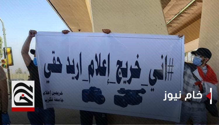 نظم العشرات من خريجي كليات الاعلام، اليوم الاربعاء تظاهرة احتجاجية امام مبنى رئاسة الوزراء،في العاصمة بغداد ، للضغط باتجاه تنفيذ مطالبهم.