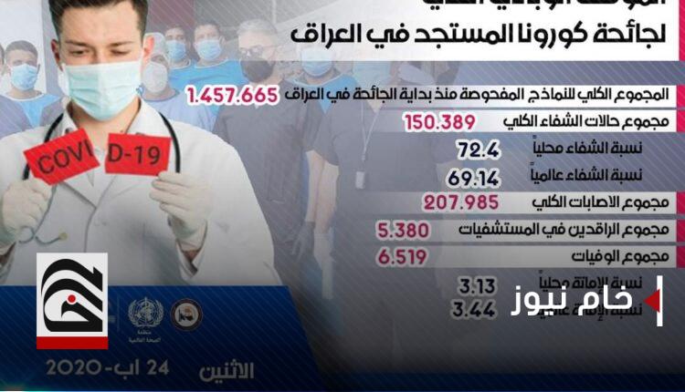 خام-بغداد: أعلنت وزارة الصحة العراقية اليوم الإثنين، (24 آب، 2020) ارتفاع مجموع الإصابات الكلي إلى 207985 إصابة بفيروس كورونا في عموم العراق.