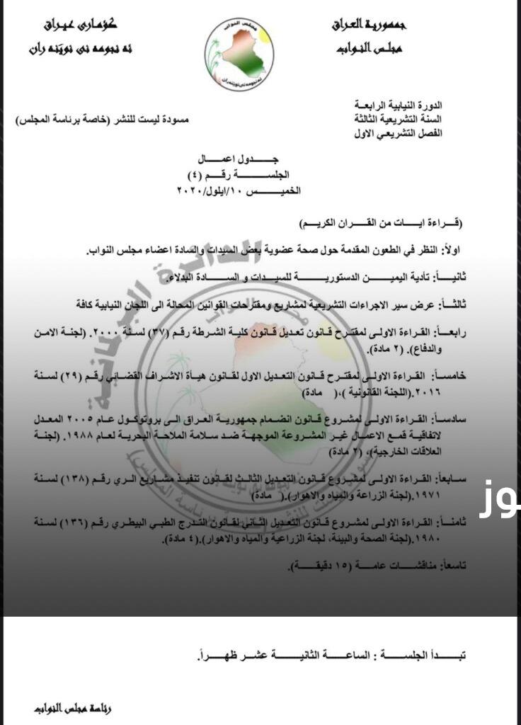 أعلنت الدائرة الاعلامية لمجلس النواب، اليوم الأربعاء، جدول أعمال جلسة يوم غد الخميس.