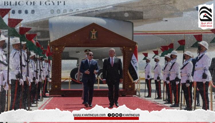 وكان الرئيس العراقي، برهم صالح في استقبال نظيره المصري، حيث أقيمت مراسم استقبال رسمية له في مطار بغداد الدولي.