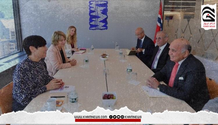 وقال المتحدث باسم الوزارة، أحمد الصحاف، في بيان تلقت وكالة” خام نيوز” نسخة منه، إن “وزير الخارجيَّة فؤاد حسين التقى نظيرته النرويجيّة إيني إريكسن سوريدي، على هامش أعمال الدورة الـ76 للجمعيّة العامّة للأمم المُتحِدة في نيويورك”.