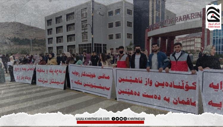 خام-متابعة: استأنف الطلبة الجامعيون في كردستان، اليوم السبت احتجاجاتهم أمام جامعة “رابرين” في السليمانية وذلك بعد توقف استمر لأكثر من أسبوع.