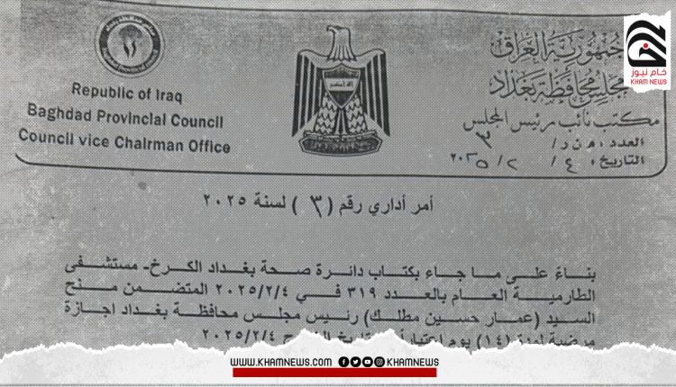 وأظهرت وثيقة موقعة من نائب رئيس مجلس محافظة بغداد، محمد الجويبراوي، يمنح فيها إجازة مرضية للقيسي مدتها 14 يوما، بدءا من يوم 4 شباط/ فبراير الجاري، وذلك بناء على تقرير طبي صادر من مستشفى الطارمية في دائرة صحة الكرخ.