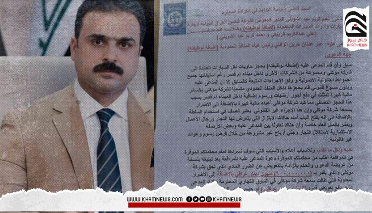 كشف وثيقة مسربة تتضمن عريضة دعوى مقدمة إلى محكمة البداءة في الكرادة، رفعتها إحدى شركات تجارة السيارات تطلب فيها الشكوى على رئيس هيئة المنافذ الحدودية عمر الوائلي.