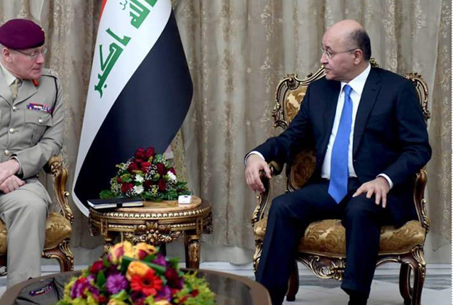 وقال مكتبه في بيان تلقت (خام) نسخة منه، إن “رئيس الجمهورية برهم صالح، استقبل في قصر السلام ببغداد اليوم مستشار وزارة الدفاع البريطانية الأقدم لشؤون الشرق الأوسط جون لوريمر يرافقه السفير البريطاني لدى العراق جون ويليكس”