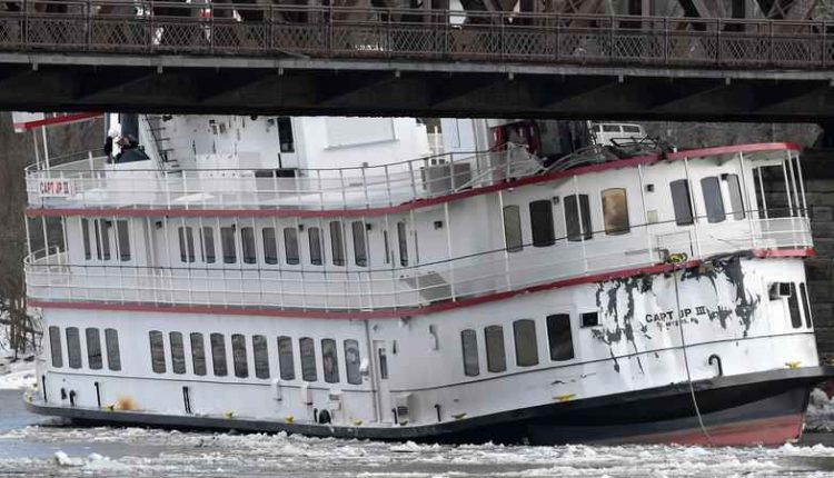 خام – متابعة: انفصلت سفينة سياحية عن مرساها وانجرفت حتى علقت أسفل جسر لسكة حديد في نيويورك، نتيجة تدفق جليدي من نهر هدسون، وفق ما ذكرت صحيفة “مترو” البريطانية.